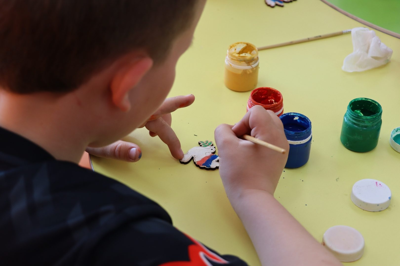 Участники расписывали деревянные значки с изображением голубя — символа мира и единства.